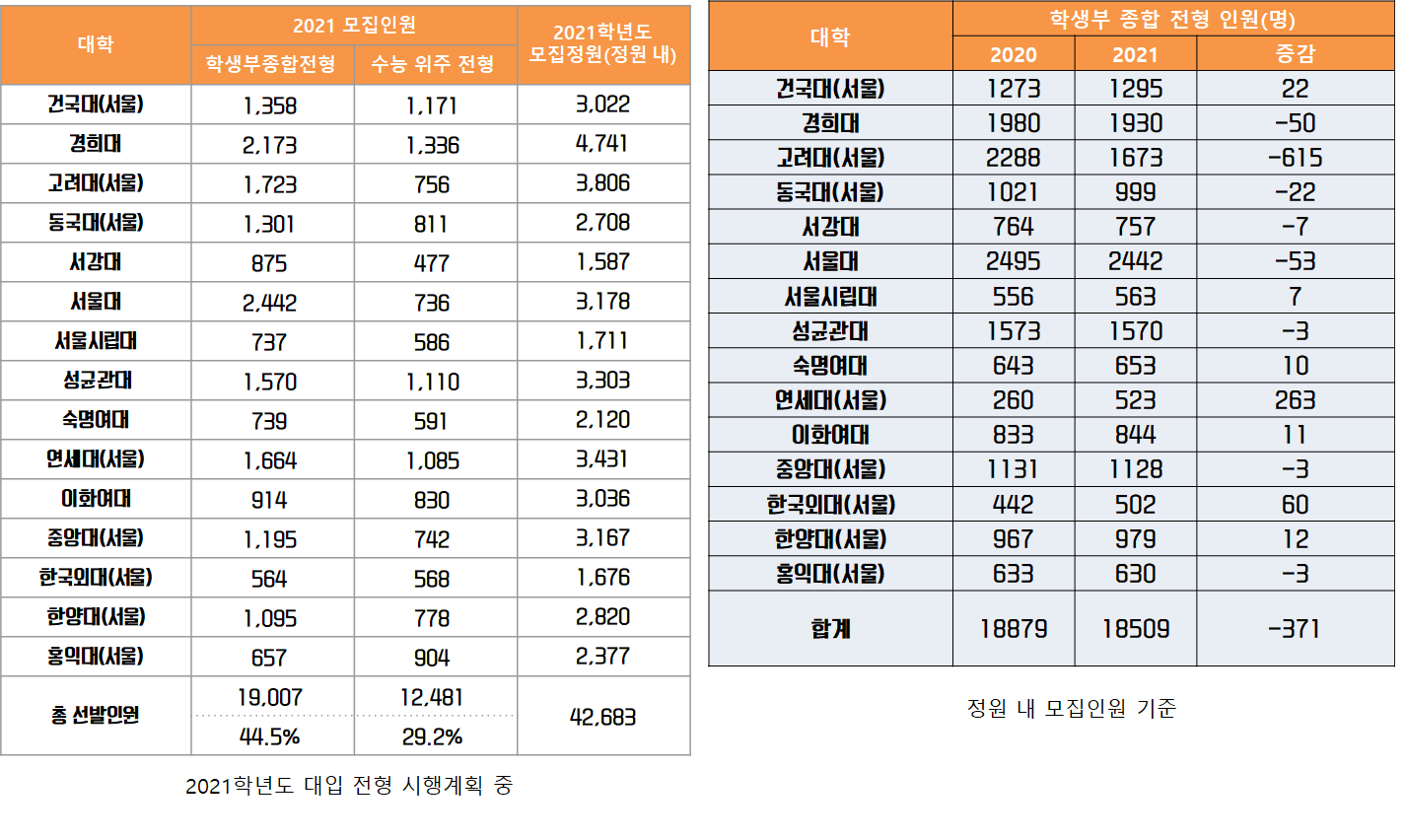 이는 2021학년도 대학별 전형 변화 추이를