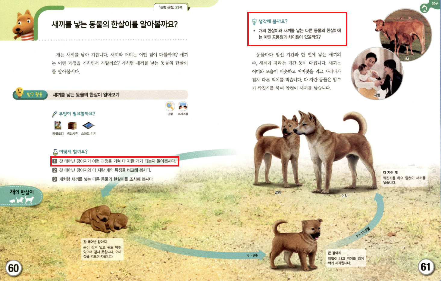 교과서 60~61쪽, 실험관찰 31쪽은 새끼를 낳는