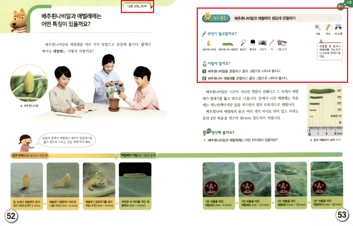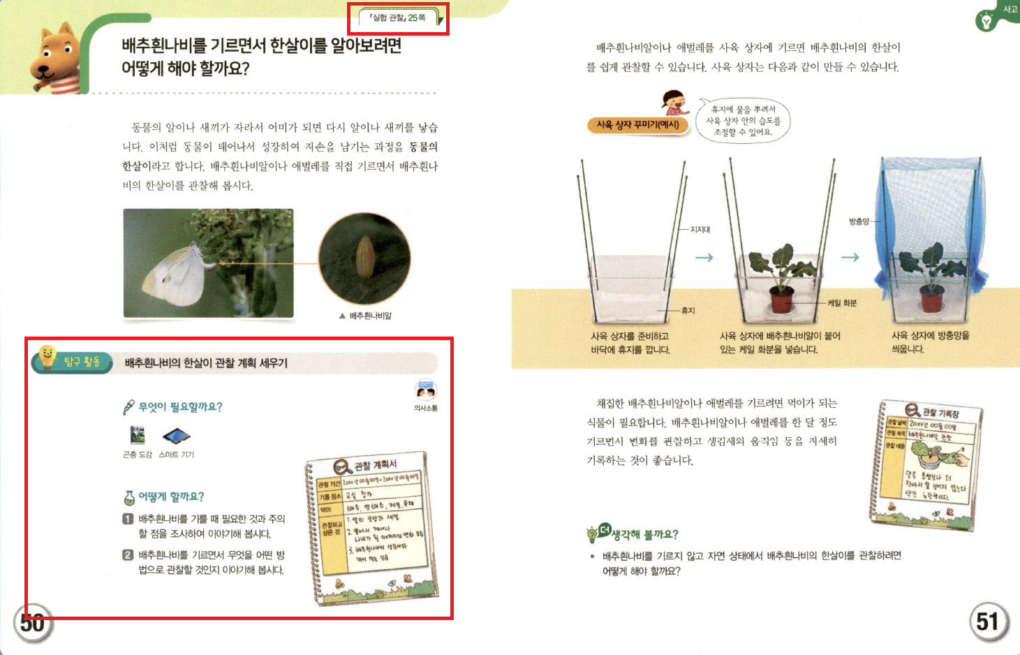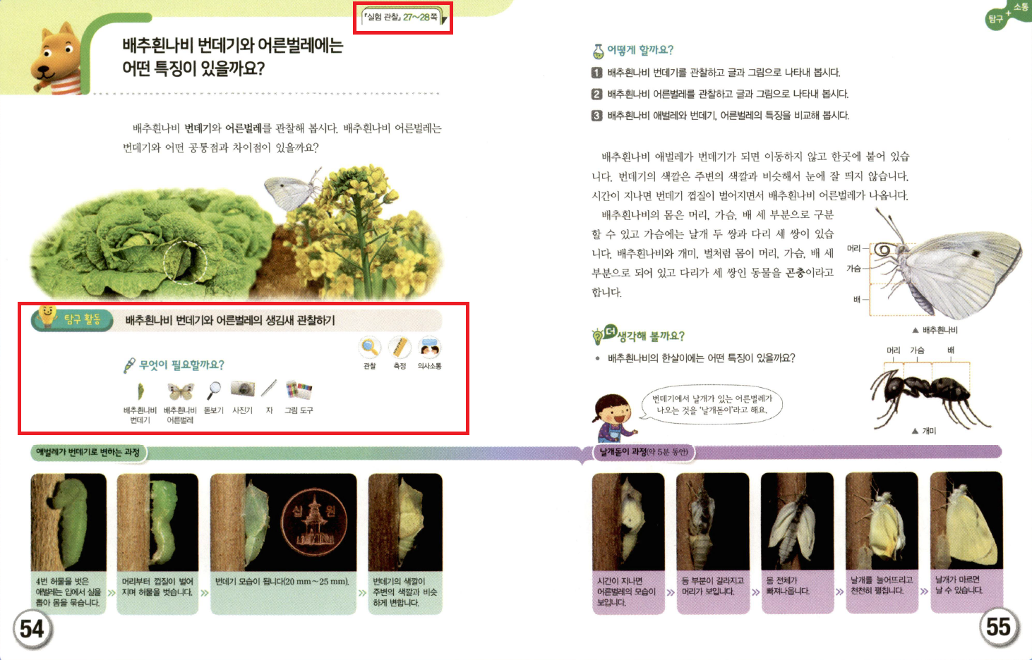 배추흰나비의 시기별 관찰은 교과서 52~55쪽, 실험