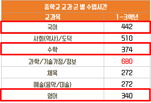 보시면 알겠지만, 여전히 국영수에 많은 시간과