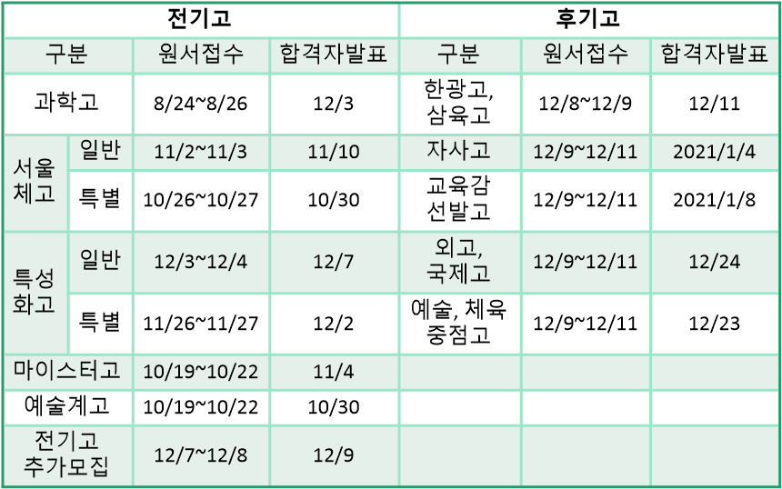 10월 19일, 서울체육고등학교 일반전형이 11월 2일